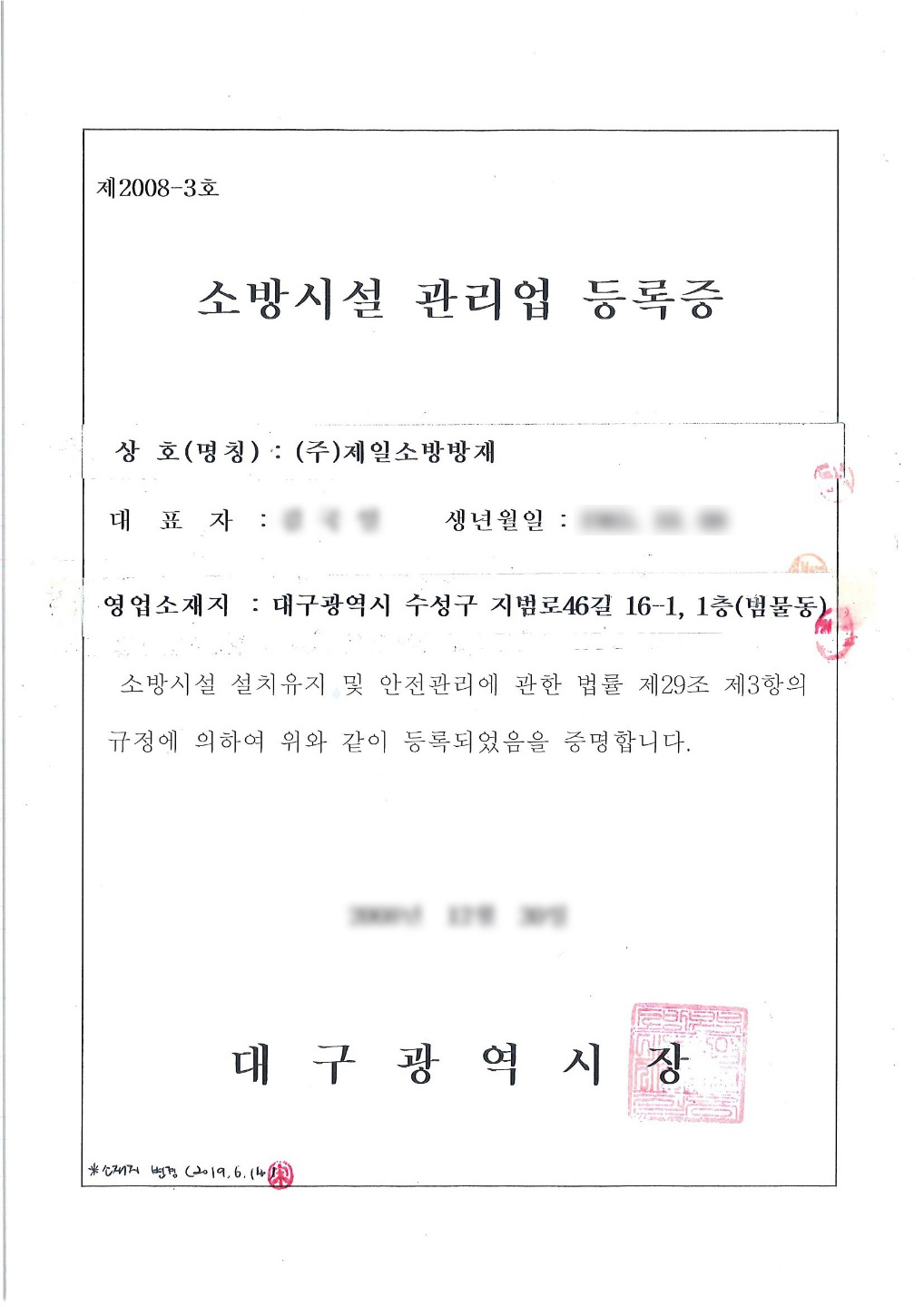 소방다중이용업소 소방필증·공사