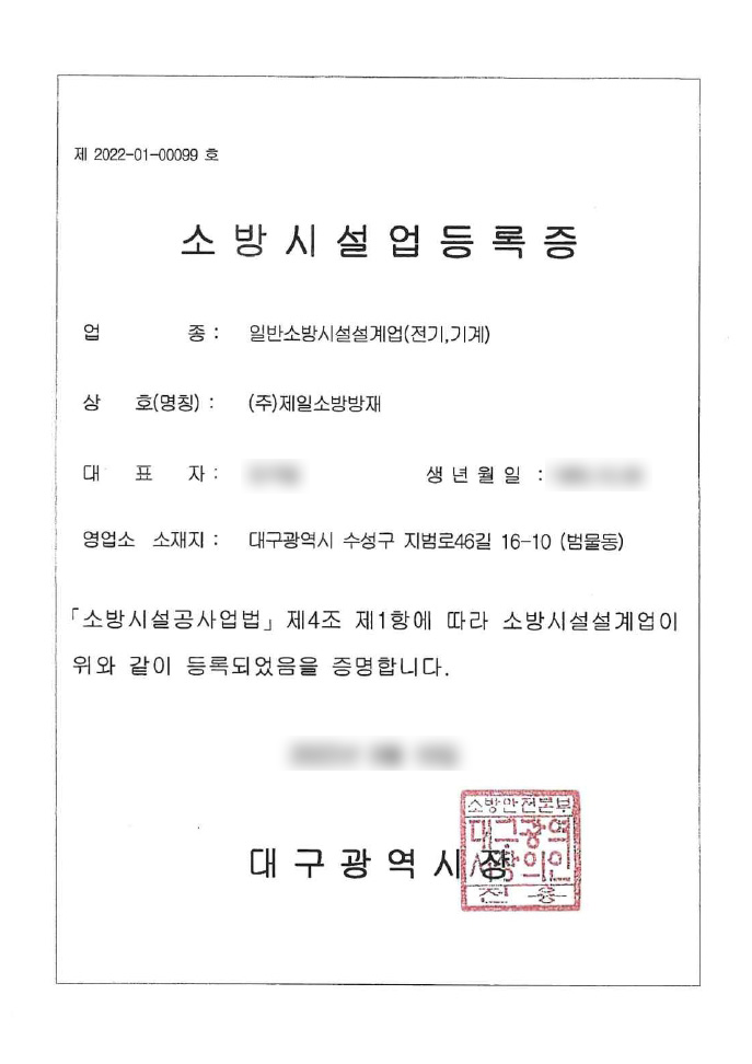 20여년 이상의 경력과 노하우로 여러분과 함께해온 (주)제일소방방재는