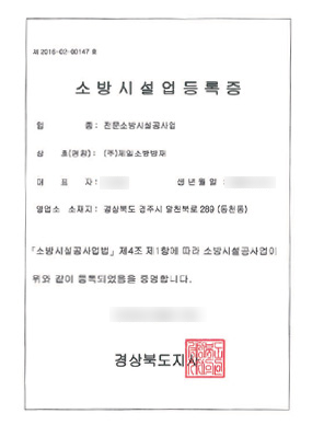 소방시설업 등록증