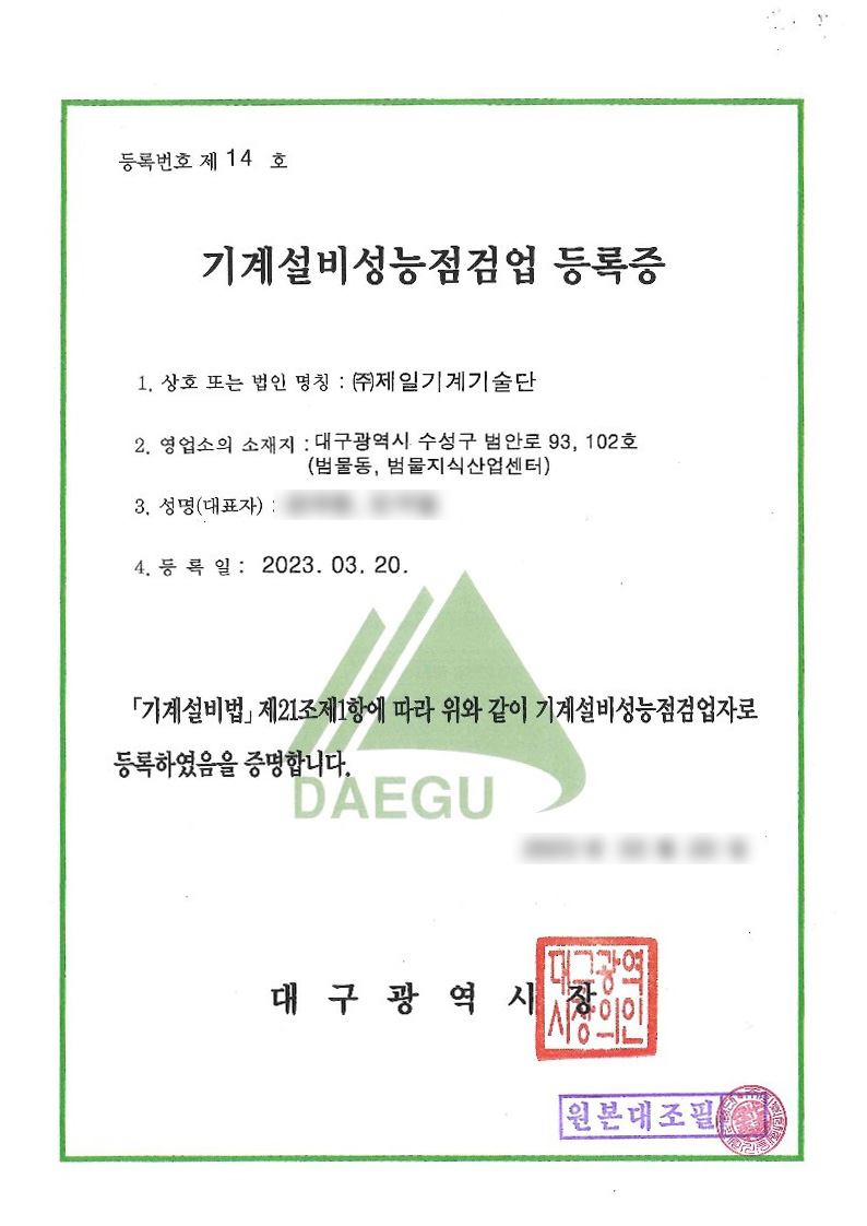대구 본사 면허 등록증