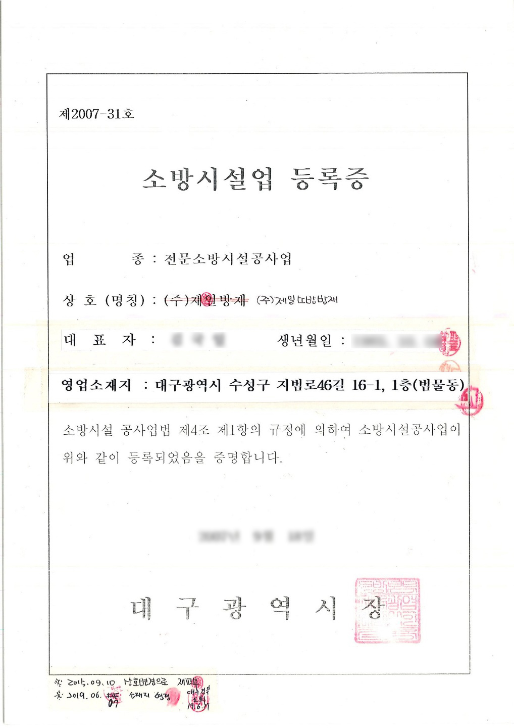 소방다중이용업소 소방필증·공사