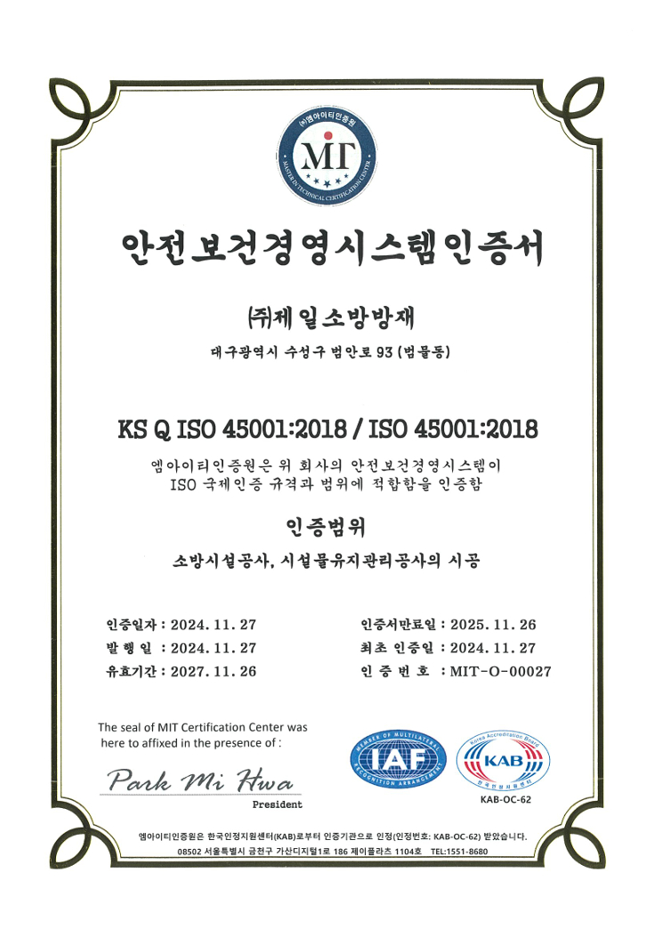20여년 이상의 경력과 노하우로 여러분과 함께해온 (주)제일소방방재는