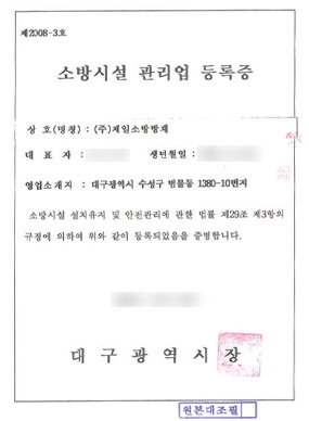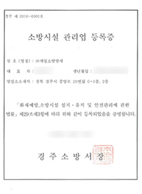 소방시설관리업 등록증