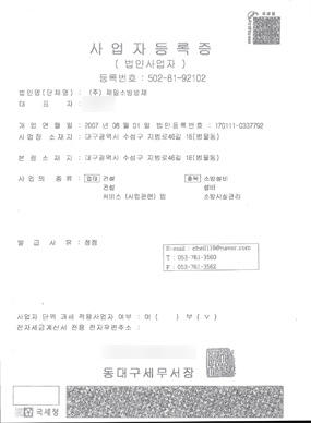 대구 본사 면허 등록증