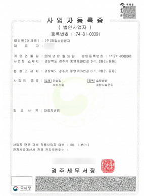 경주 본사 면허 등록증